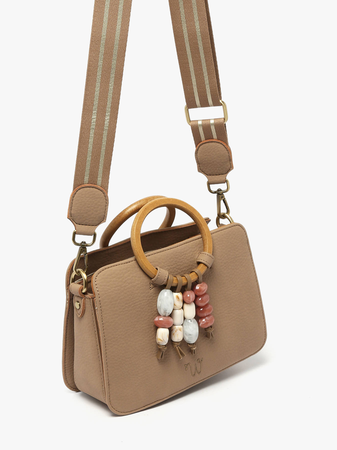 De cross body tas WOOMEN formaat S uit de lijn Camomille Pearl valt op door zijn delicate parelfranjes, het centrale ontwerpelement, gecombineerd met houten ringen voor een elegante en eigentijdse landelijke uitstraling. Gemaakt van polyurethaan bestaande uit 58% gerecyclede materialen, met een voering van katoen en linnen, biedt hij lichtheid en stevigheid voor dagelijks gebruik. De drie compartimenten, waaronder het middelste met ritssluiting, het binnenste ritsvak en het buitenste ritsvak aan de achterkant, zorgen voor optimale organisatie van je persoonlijke spullen. De iriserende, verstelbare en afneembare schouderriem maakt flexibel dragen mogelijk, terwijl de magnetische sluitingen je spullen veilig houden. Het gouden resinelogo geeft het model een verfijnd vleugje. Dankzij de verzorgde afwerking wordt deze tas een uniek, praktisch en stijlvol accessoire, ideaal om al je outfits te completeren, van casual tot gekleed.