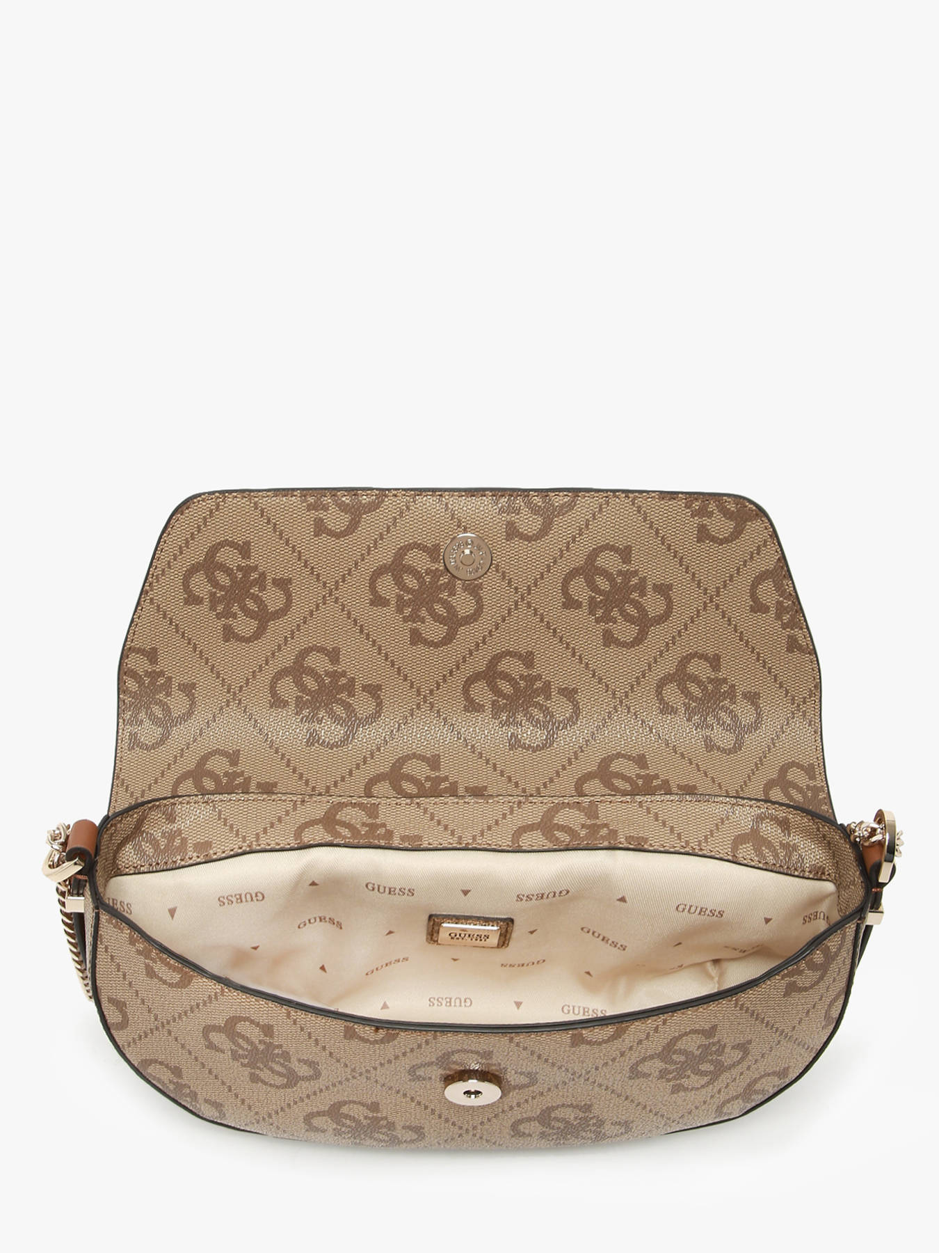 De cross body tas Erenia van Guess, gemaakt van duurzaam gecoat canvas, combineert elegantie en functionaliteit voor een stijlvolle dagelijkse look. De klepsluiting met magneet beveiligt je bezittingen en biedt tegelijkertijd gemakkelijke toegang. Hij kan over de schouder of als cross body tas worden gedragen dankzij de verstelbare schouderband, wat comfort en veelzijdigheid biedt afhankelijk van je behoeften. De buitenkant is voorzien van een praktisch achtervak om je essentials binnen handbereik te houden. Het interieur bestaat uit een hoofdcompartiment, aangevuld met drie eenvoudige vakken, waardoor je je persoonlijke spullen efficiënt kunt organiseren. Compact maar functioneel, overtuigt de Erenia met zijn moderne lijnen, verzorgde afwerking en chique stedelijke uitstraling. Ideaal voor dagen in de stad of casual uitstapjes, wordt dit een onmisbaar accessoire dat stijl en functionaliteit combineert om je outfit elegant te completeren.