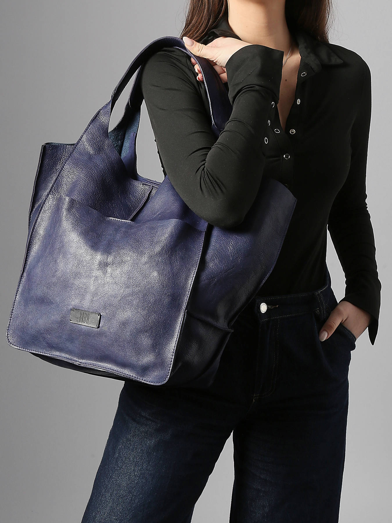 • Schoudertas Cow A4 Leder Basilic pepper Zwart cow 756385